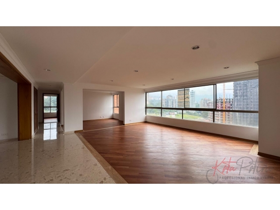 Apartamento en venta El Poblado con una excelente ubicación cerca al centro comercial Santa Fe y milla de oro ademas de contar con excelentes vías de acceso. El inmueble cuenta con un area de 228 metros distribuidos en 3 alcobas , dos de ellas con baño privado , sala comedor amplia, baño social , alcoba de servicio también con baño , sala de televisión , cocina cerrada, y balcon con vista a al norte ademas de contar con 2 parqueaderos independientes cada uno con cuarto util . La unidad cuenta con Juegos infantiles, placa polideportiva y salón social
