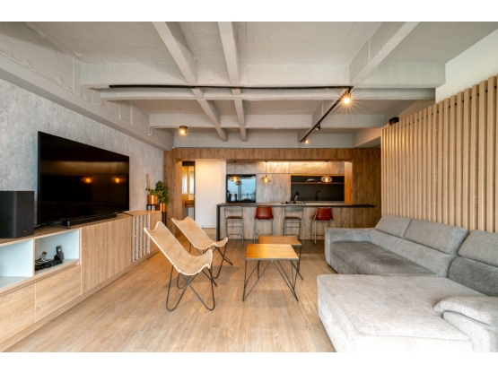 Pv.ap venta de apartamento en la loma del indio con decoración industrial de 117 metros dos alcobas más estudio , 3 baños, sala comedor amplia cocina integral balcón amplio con hermosa vista , además cuenta con 2 parqueaderos paralelos y cuarto útil grande