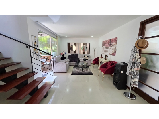 PV-SM 9433076 - SM -VENTA CASA ENVIGADO LOMA DE LOS BENEDICTINOS Casa de 220 metros que cuenta con tres habitaciones cada una con baño y vestier, biblioteca, salón comedor, zona de ropas con espacio para cuarto de servicio, baño social. Dispone de dos terrazas, cuatro parqueaderos, cuarto útil y zona verde privada. Ubicada en unidad cerrada de 94 casas independientes. La unidad cuenta con portería 24 horas, paneles solares para zonas comunes, piscina climatizada, gimnasio, sauna, turco, juegos infantiles, cancha múltiple, zona de mascotas y moto rondero. A menos de 10 minutos en carro se encuentran lugares de referencia como el Colegio Benedictino, el centro comercial City Plaza, Mall La Sebastiana, Supermercado Carulla, Mall Terracina Plaza, la Clínica del Rosario sede El Tesoro, la Iglesia San Marcos, el Parque de Envigado y la estación Ayurá del Metro. Vías de acceso cercanas incluyen la Loma de Los Benedictinos, la Transversal Intermedia y la Loma del Escobero, que permiten una conexión ágil con El Poblado, Las Palmas y el centro de Envigado. IMPUESTO PREDIAL ANUAL 2025: $6.200.000
