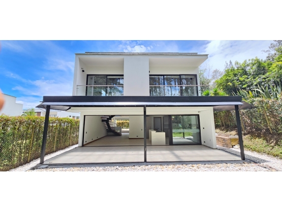 PV-SM 9537987 - VENTA CASA CAMPESTRE DOS NIVELES EL RETIRO Casa campestre de dos niveles con área construida de 260 m² sobre lote de 236 m². En el primer nivel cuenta con cocina abierta completa con barra tipo americano, integrada al comedor y al deck techado, zona de ropas, baño social, sala con ventanal, piso a techo y parqueadero doble. El segundo nivel dispone de hall de alcobas, tres habitaciones con baño privado, vestier y balcón, además de una amplia zona verde. Ubicada en Condominio con portería 24 horas, zona verde, parque infantil, zona de fogata y Salón social. A menos de 10 minutos en carro se encuentran el parque principal de El Retiro, el Mall Viva La Ceja, restaurantes como La Montaña Grill y El Rincón Antioqueño, supermercados como Carulla y D1, así como la vía principal hacia La Ceja y Llanogrande.
